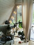 Необычно, малюсенький домик, все удобства под рукой. Первое впечатление, прям вау!)))) огоньки, симпатично. Менеджер песель встречает! Из плюсов уединение, выходишь и сразу мини лес! Стильно и уютно. Приятные икеевские мелочи...