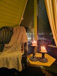 Вернулись из глуши, были 2 ночи на буднях 2 человека с большой собакой. Очень понравилось! Были вообще одни, в других домиках никого на территории не было, была тишина. Очень милые А-домики, все удобства есть. Заказывали купель- была горячей весь вечер, кальяны- хорошие. Хозяева гостеприимные, все просьбы учитывали Отдельная любовь- Тефтелька, сидела в нашем домике, общалась с собакой. Тефтелька тактильная, добрая, сладкая! Приедем еще Спасибо за отдых!