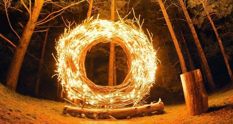 Игры и прогулки на природе в лесу в Гнезде на базе отдыха в Тюмени. Загадывание желаний у Мужского и Женского Камня, разведение Огня на Месте силы, возможность проведения фотосессии до 22.00 /10 полешек/