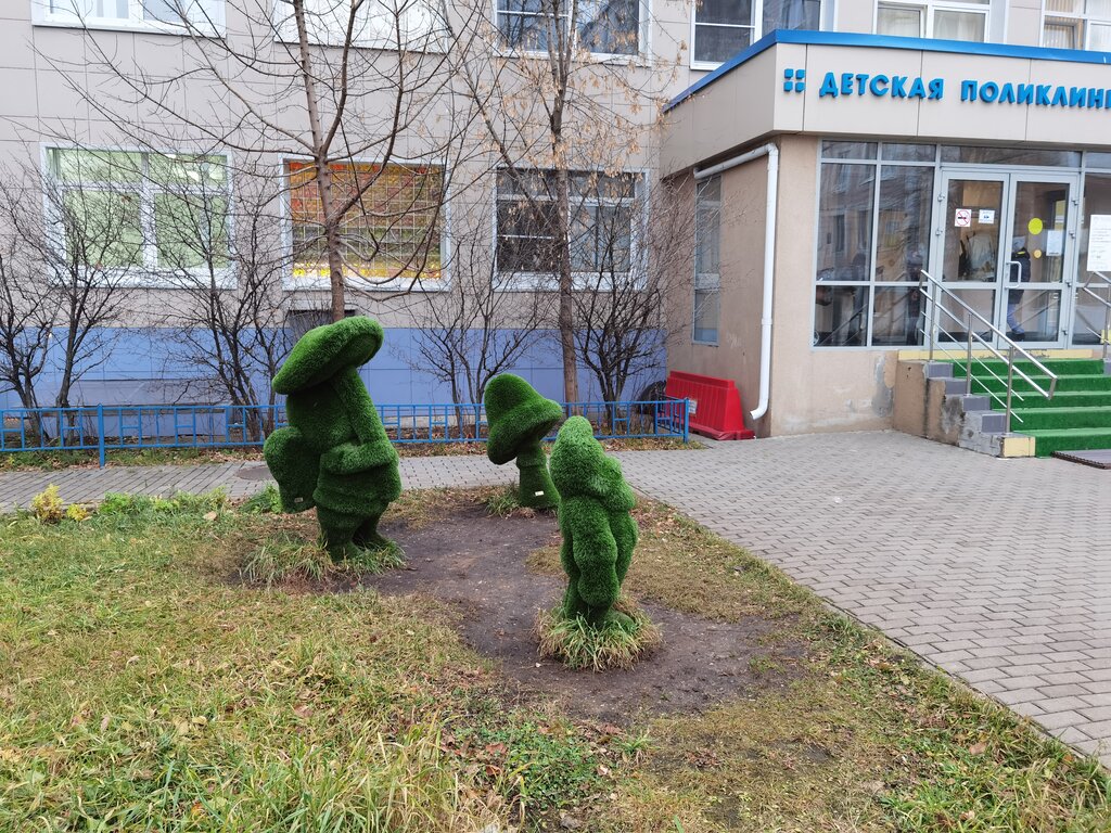 Красивые скульптуры на входе в детскую поликлинику, детям осень нравятся, побольше бы зелёных инсталляций!!