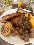 Первое впечатление было хорошим, красивый чистый туалет, гардероб, просторный холл, но на этом все. Посадили за пустой стол с тарелками, салфетки, перец и соль пришлось самим просить. Музыки не было, также только по просьбе включили. Изначально посадили за стол возле лестницы с выходом на улицу, где была открыта дверь, откуда сильно дуло. На просьбу закрыть, отказали, так как людям в випе жарко, а вип находится в метрах 7 от лестницы, пока у них охладится, мы очень замёрзнем. Поэтому сменили стол. Блюда подавали очень долго, хотя кафе было полупустое. Шашлык ждали больше часа, так ещё и принесли все холодное. Порции маленькие, а цены высокие.