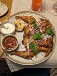 Вчера обедали в Гоголе, очень уютная атмосфера, располагает к неспешному отдыху после трехчасовой экскурсии по Воронежу в не самую лучшую погоду. Вошли, сели и сразу согрелись (столик бронировала заранее и правильно сделала, потому что, несмотря на обеденное время, посетители были. ) Самый лучший столик-это на диванах на первом этаже справа в углу-располагает к вкусному и расслабленному времяпровождению. По еде-было заливное из рыбы и холодец, донской салат, судак по-деревенски, пельмени из трех рыб, пирожки с капустой, чай и вино. Моему визави очень понравился донской салат-микс салата, томаты, рыба, соус-остался доволен, заливное тоже зашло, про пельмени-сказал что неплохо, но чуть суховаты, добавил бы кальмары для сочности, но он с берега балтийского, так что сильно избалован свежей и качественной рыбой. Его оценка 5 с минусом. Про меня-вот честно, холодец у меня вкуснее получается, но, как говориться, борщ и холодец каждый любит как мама или бабушка дома готовит. Так что я не в претензии. А вот судак был очень вкусный, сочный, с корочкой и с хорошим вином-просто песня! Про напитки долго писать не буду-тут все хорошо, так как есть из чего выбрать на свой вкус и подходящее к блюдам. Самое главное-это что моему гостю все понравилось, спасибо Гоголю, за прекрасно проведенное время!