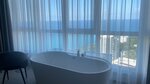 Отдыхали вдвоём, нам очень понравилось! Бесконтактное заселение, если вам заранее не написал менеджер (как нам), рекомендую самостоятельно связаться с отелем, чтобы не ждать под дверью, когда отправят код от домофона, тк сам дом - жилой комплекс, в котором на 18 этаже апарты. Номер большой, чистый и уютный, есть все необходимое (посуда, приборы, чайник, микроволновка, утюг, гладильная доска, фен, халаты). Апарты подойдут мне кажется как для длительного проживания, так и на несколько дней, чтобы насладиться видом. Особенно впечатлил шикарный вид на море, именно из-за панорамных окон тут остановились. Ванна прямо у окна - роскошно. Кровать удобная, спать одно удовольствие. Ещё радует, что завтрак приносят бесконтактно, оставляют прямо у номера, завтрак заранее с вечера заказывается по whatsapp у администратора. Завтраки простые, но большие, голодным точно не останешься. Рядом с ЖК есть Пятёрочка, очень удобно. Единственное, напрягла ситуация с выездом: в 11:50 стучала уборщица и спрашивала, когда будем выезжать, хотя мы уже стояли с чемоданами, думаю все гости в курсе о выезде до 12:00 и лишний раз настырно напоминать о себе - не корректно, в сетевых отелях подобного нет. Не смотря на эти мелочи, вернемся сюда еще обязательно, тк такой вид никого не оставит равнодушным.