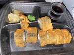 Решили заказать тут по рекомендации знакомых. Нам средне понравилось. В целом, на «голодный желудок», пойдёт. Скушали, вроде вкусно. Из минусов - заказал себе ролл «Таманеги», из-за криспи лука. Приложил фото как выглядит на сайте, и прикладываю фото как нам пришло. У меня в порции роллов - тонкий намек на лук, с фото на сайте несравнимо)))) Ну и в целом - ролл «Таманеги» на мой взгляд «пресный», безвкусный. Остроты - никакой, хотя в составе «острый соус». Роллы «Темпура лосось» - нарезаны не пойми как, даже «на глазок» - криво. Ей богу, последний, самый крупный кусок ковырял палочками что бы съесть, иначе замазал бы весь свитер, пока пытался его запихнуть в рот. Соевый соус в комплекте - ну такое. Что-то безвкусное. Не утверждаю, что так, но на вкус как будто разбавили обычный покупной соевый соус водой 1 к 1 и подали нам к роллам. Ну прям реально очень разбавленный на вкус и вид.