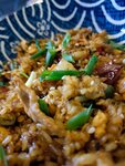 Свинина, вино кулинарное китайское, глютамат натрия, болгарский перец, репчатый лук, кунжут, паровой рис, крахмал кукурузный, масло растительное, имбирь, чеснок, хлопья чили, томатная паста, сахар, соевый соус, уксус рисовый светлый, соус устричны...