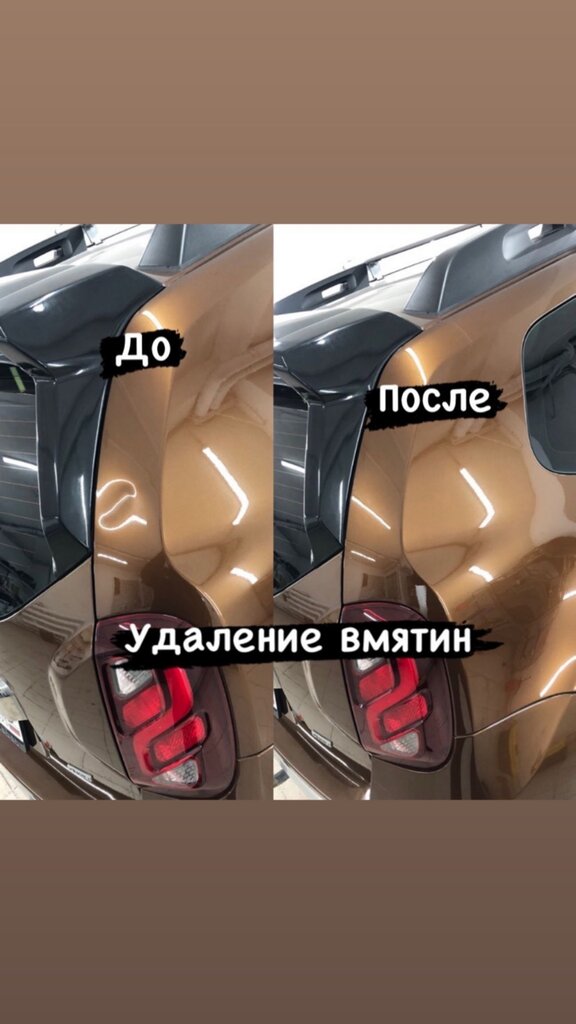 Вчера в течение нескольких часов устранили приличную вмятину на двери багажника моего Kia Sportage. Как будто ее и не было. Спасибо Ильфату. Он настоящий профи! Все точно, "как в аптеке" время начала и окончания работ, а также стоимость!!!