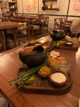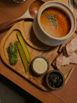 📍гопак Начну с того, что это самый лучший борщ в моей жизни, он правда наваристый и очень вкусный, мяса много. Вы только посмотрите на эту порцию и подачу.. за 740р вы получите еще чесночные пампушки, лучок, сметану, огурцы/перец бочковые, хлеб с салом и чесноком, хреновуху и намазку из сала, ну и большую порцию борща)) однозначно 1000/10 +комплимент от заведение намазка из сала и чеснока с черным хлебушком Селедка под шубой с икрой отвал бошки, идеально все, единственное не хватает лука 100/10 Вареники с вишней (брала Маша ) заменила, ей очень понравились, непереваренное тесто, начинки много и ярко выражена Но салат ей не очень зашел, недобор по специям, но зелень не горчит, это большой вкус, салат назывался казачок Ведерко картошки (десерт) внутри идет с вишней, правда вкусно, +соус из кремчиза (я так поняла), на выходе получаем 5 картошек среднего размера 100/10 Крымский десерт, на выбор 4 мороженного, я брала лимонный сорбет с вареньем из шишек, очень вкусно и необычно 1000/10 Также стоит отметить интересную и незаеженную линейку коктейлей, брала с облепихой (небольшое послевкусие кваса, но очень необычно) и с бузиной (тут сложно с чем то сравнить, просто необычно и вкусно) Ну и конечно же интерьер и его детали, персонал вежливый и хорошо ориентируется в меню Однозначно рекомендую, редко когда хочется так сказать, но сюда мы точно вернемся (Еще там очень эффектная подача ухи, с подожженной щепой и ложкой икры, это мы под глядели у соседских столиков) Чек средний, и оправдывает цены 10000%