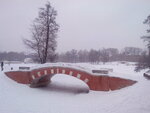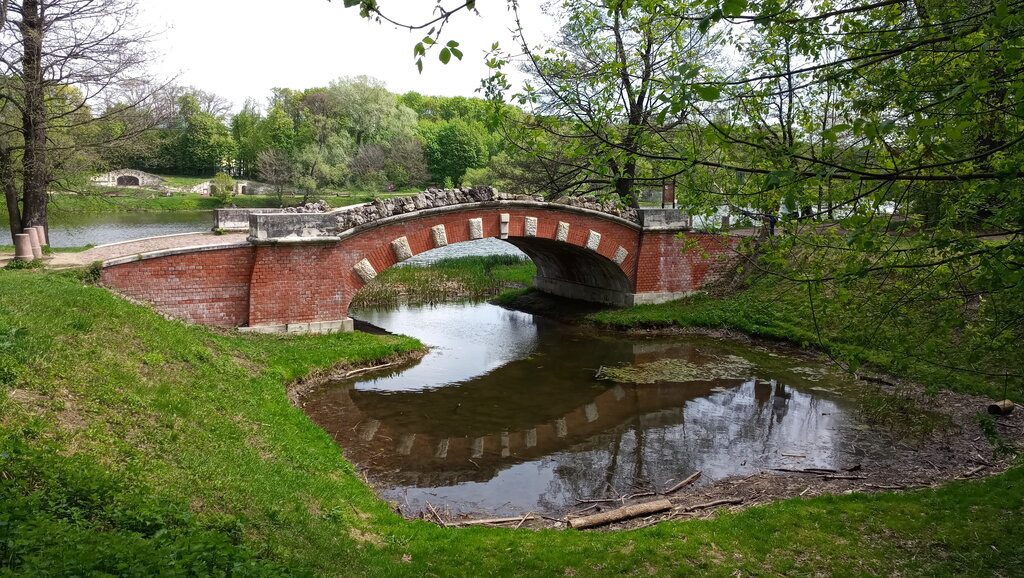 Красивый старинный мост из кирпича, архитектура как у мостиков через протоку на противоположном берегу. Находится по дороге с конного двора на полукруглую пристань.