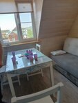 Останавливались на ночь в студии, сам дом новый, но не всё там продумано, видно торопятся побыстрее сдать, и цена завышена. Минусы - дверь в номер-студию очень плохо и туго закрывается; бойлер с горячей водой нам забыли включить, из-за чего не смогли помыться, приехали в десятом часу вечера, а он грелся больше двух часов, и то хватило лишь одному быстро ополоснуться, на второго человека не хватило горячей воды; кухонный гарнитур новый, но ручек ни одного шкафчика нет, приходилось исхищряться, чтобы их элементарно открыть; слышимость очень хорошая, с утра через стенку начали видно доделывать ремонт и стучали молотком; изнутри на балкон есть дверь, в ней торчит ключ, но он не открывает дверь, как-будто для красоты он висит, и мы так не смогли выйти на балкон