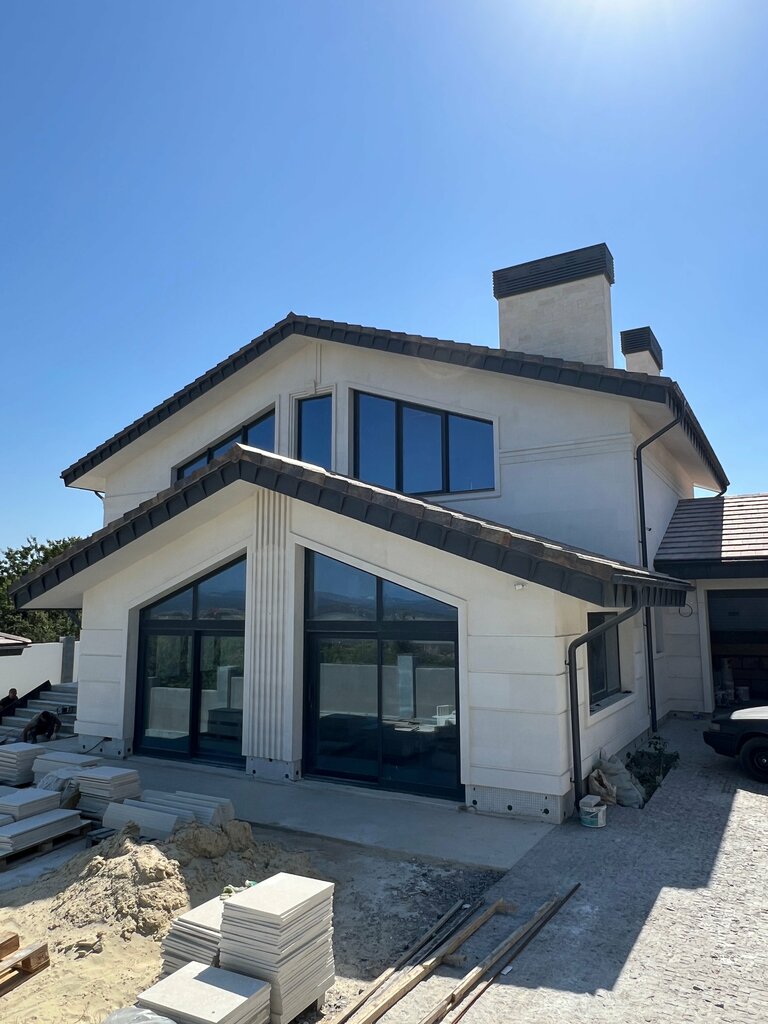 Фундамент - монолитный, железобетонный Монолитный каркас Стены - ракушечник или газобетон Фасадные работы Окна и двери Штукатурка стен, Чистовая стяжка Септик Электрика, Отопление, Водоснабжение