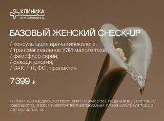 Clinic specialization:gynecology, endocrinology, surgery, mammology, trichology, ear nose and throat, dermatology, gastroenterology, orthopedics, ophthalmology, therapists, psychology and psychiatry, nutrition, cosmetology, traumatology, pulmonology, physical therapy, cardiology, proctology, oncology, psychiatry, diagnostics, medical certificates, narcology, neurology, kidney disorders, urology, obstetrics, family medicine, botulinum therapy, infusion therapy, plastic surgery, rheumatology, men's health, Bariatric surgery, weight correction