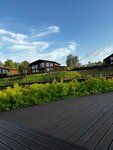Посетили отель в начале ноября, снимали один большой дом и один Barn дом, соответственно на 10 и 4 человек. Отель расположен в городской черте, за забором оживленная дорога. Территория, где находятся домики, не очень большая, благоустроенная : мощёные плиткой дорожки, клумбы, детский городок с большим батутом, спортивная площадка с разметкой для мини футбола и тенниса. Есть большой пруд с оформленными берегами, и зоной для летнего отдыха (гамаки, лавочки-качели, подиум для загорающих), большая парковка (есть тележки для багажа), игровой павильон для детей (не работал). На территории строится ещё павильон. Здание гостиницы и СПА комплекса хорошо оформлены, бассейн большой, часть выходит на открытый воздух, комфортная температура воды. Домики оформлены со вкусом, в большой кухне- столовой есть все от индукционной плиты, микроволновки, посуды, дополнительного крана для питьевой воды до большого телевизора с подключенным кинотеатрами и, даже, с очками дополненной реальности (за дополнительную плату). Спальни просторные (в 4-х местном домике), кровати удобные, белье новое. А вот комплекты полотенец цвета мокрый асфальт не понравились. Завтраки не предусмотрены. Теперь нюансы: в 4-х местных домах нет сушилки для купальников, вообще никаких приспособлений для этого. Подход к домикам с тыла по рыхлой гравийной полосе, освещения нет, только два светильника не выше колена, направленные в землю, обозначают начало этой полосы. Вообще с освещением территории проблема: есть подсветка фасадов и гирлянда над зоной загара, а сами дорожки, куда ступаешь, в полной темноте. Летом это не критично, но осенью темно уже в 17 часов. Основная же причина 4-х звёздочкой оценки - это явное недоверие к гостям. Нет, персонал приветливый, все разъясняет, но с первой минуты он обязан говорить, что запрещено гостям и на все предусмотрены штрафы. Плюс надо внести 10 тысяч залога наличными, на случай если ты приехал все ломать. Представьте, 14 человек (4детей) после 3 часов в дороге из соседнего региона заполняют бумаги (на обороте около 15 пунктов правил) и получают пучек электронных браслетов, упаковок с зубными щетками (хорошо, что тапочки были в домах) и по ОДНОМУ ключу на домик. Рядом оформляли семью из четырех человек и им вежливо сказали, что если задержатся в СПА зоне на одну минуту, то это засчитывается за следующий час и 400 рублей. В домах не оказалось листовок с правилами проживания, расписанием услуг, меню кафе, только отлично выполненные таблички с запретами. Оказалось, что есть бесплатный теннис: в 9 утра сетка на корте была, а когда в 10 пришли с ракетками, ее сняли и объявили, что сезон закончен. На просьбу самим натянуть и снять - отказ. Вот такое впечатление от отдыха: вроде и удобно все, современно, а психологически, как в прошлое попал, особенно, когда все ждали прихода сотрудника по приемке дома - иначе не выйдешь.