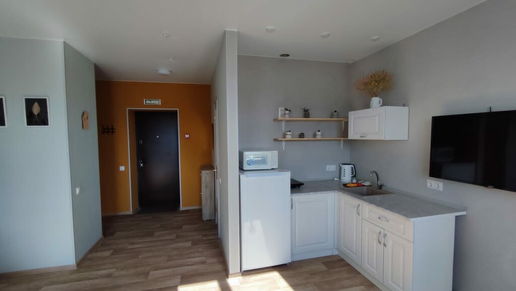 Отель самообслуживания. Но по телефону нам всё равно помогли заселиться. Я не опытный путешественник, поэтому интерьер описывать не буду. Напишу о том, что важно мне. Дверь мощная. Прихожая большая. В ванной тоже без клаустрофобии. В душевой кабинке поместилась шикарно. Стиралка с порцией порошка. Спальня с дверью, не пропускающей шум телевизора. Кухня-столовая просторная. В ней раскладной диван, большой обеденный стол, холодильник, мойка, инверторная печь. Кастрюля, сковородка, вилки-ложки-чашки и т.п.