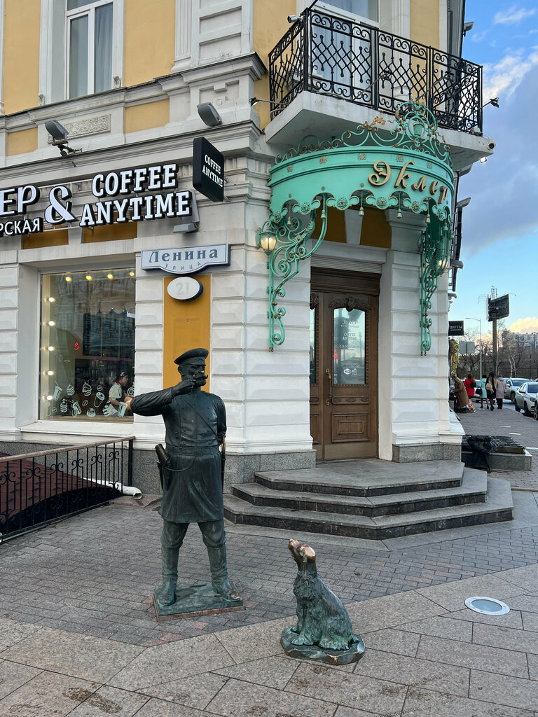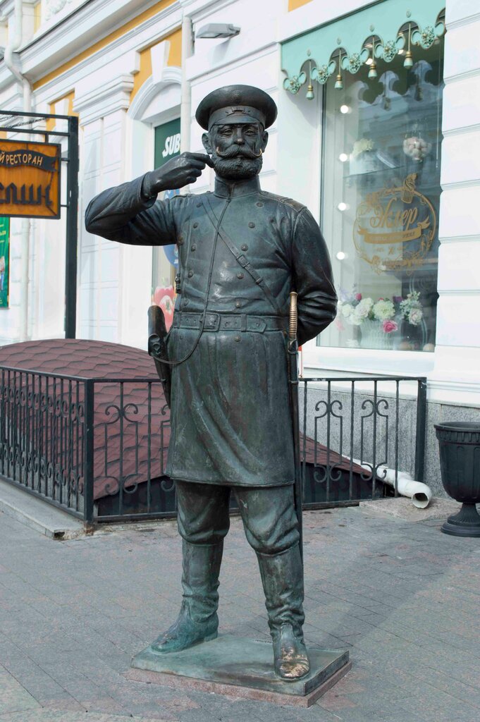 Замечательная скульптурная группа, городовой и его друг - на страже порядка. Хорошая фотозона, добрейший городовой с залихватскими усами, так и тянет подкрутить их, а спаниеля погладить.