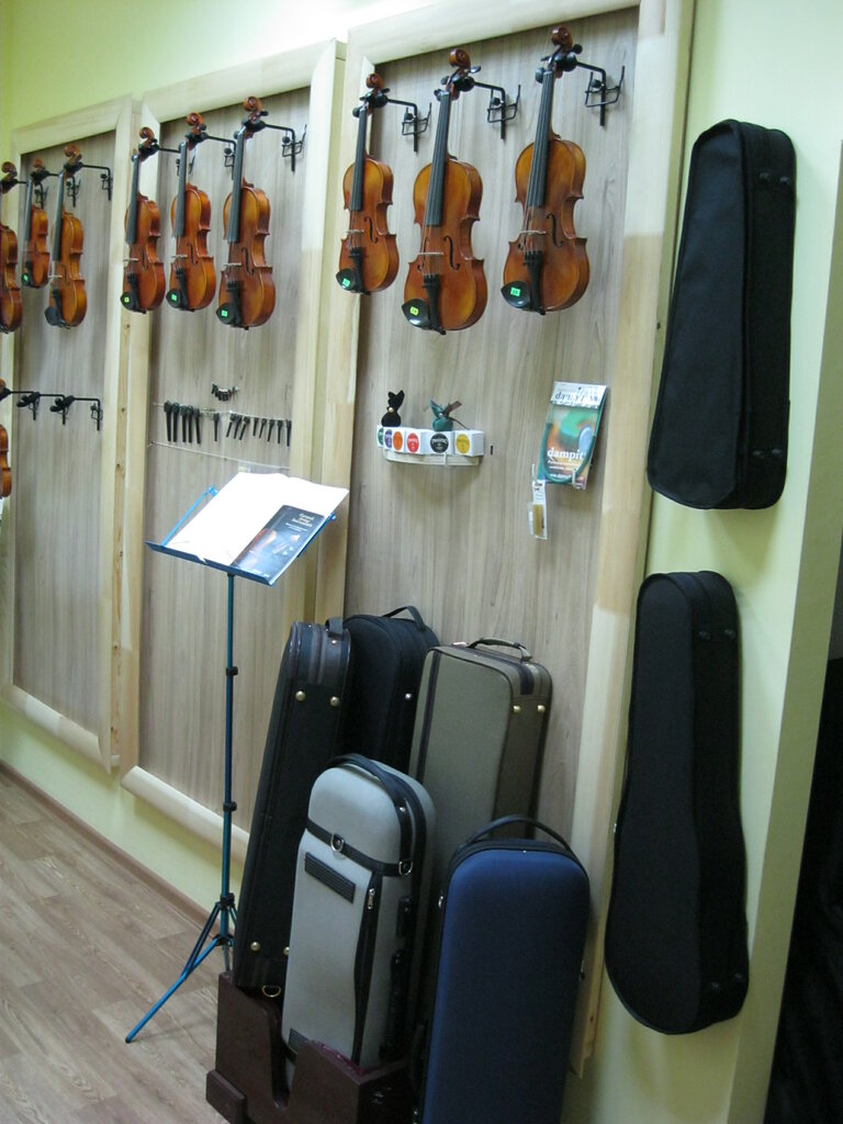Реально есть всё что нужно для скрипачей - как инструменты, так и любые комплектующие к ним. Отдельным достоинством являются консультанты, там работающие - это люди с профессиональным музыкальным образованием, которые реально разбираются в теме, умеют играть, чтобы продемонстрировать достоинства инструментов, которые продают. Они могут помочь с покупкой как профессиональному музыканту, так и начинающему. Я пока что совсем не умею играть, и консультант мне помогла подобрать инструмент. Мы потратили на это час. Нужная мне модель была в магазине в трёх экземплярах, и вот мы слушали каждый инструмент, консультант играла, и мы сравнивали, какой звучит лучше. Рекомендую.