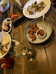 Гирлянды у входа в ресторан ещё год назад запали мне в душу - рисовалась картина уютной летней веранды вдали от шумных улиц. Когда этим летом выбирали место с верандой, вспомнил о Горожанах, пришли сюда поужинать. К моему удивлению никакой веранды у ресторана не оказалось. Либо она была раньше, а теперь нет. Либо это были лишь мои фантазии. Входя в ресторан, оказываешься как бы на втором этаже в малом зале, а барная стойка и два других зала - на первом этаже вниз по лестнице. Официанты были приветливы и общительны, хотя нечасто поднимались к нам на 2 этаж, чтобы спросить - нужно ли что-то ещё. Ресторану определённо стоит подумать над системой вызова со второго этажа. Залы оформлены в стиле лофт. Здесь неплохой выбор вин, многие стоят на открытом стеллаже на 2-м этаже - это добавляет уюта в целом в не слишком уютном лофтовом простоанстве. Еда в целом понравилась.