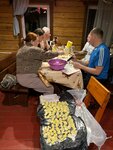 Дом очень комфортный, имеется отопление (котел). На первом этаже стол, скамьи, диван, кузонка с посудой. Есть холодильник, чайник и плитка. Раковина и горячая вода. Даже сушилка для одежды имеется На втором этаже крепкие топчаны,и хорошие матрасы, подушки и одеяла. Выдали чистое постельное белье. Есть электричество, достаточное количество розеток. Дом рассчитан на 10 человек.