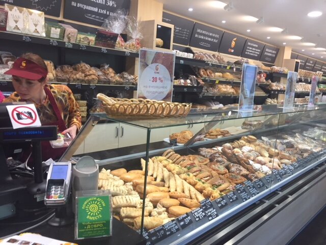 Магазин в целом хороший, но мне видимо сегодня не повезло, купила три вида пирожных, эклеры заварные оказались с кислым и прогорклым кремом. Не свежие… на фото то, что я купила, все по два взяла, эклер придётся выкинуть, дочка один раз откусила и выплюнула.