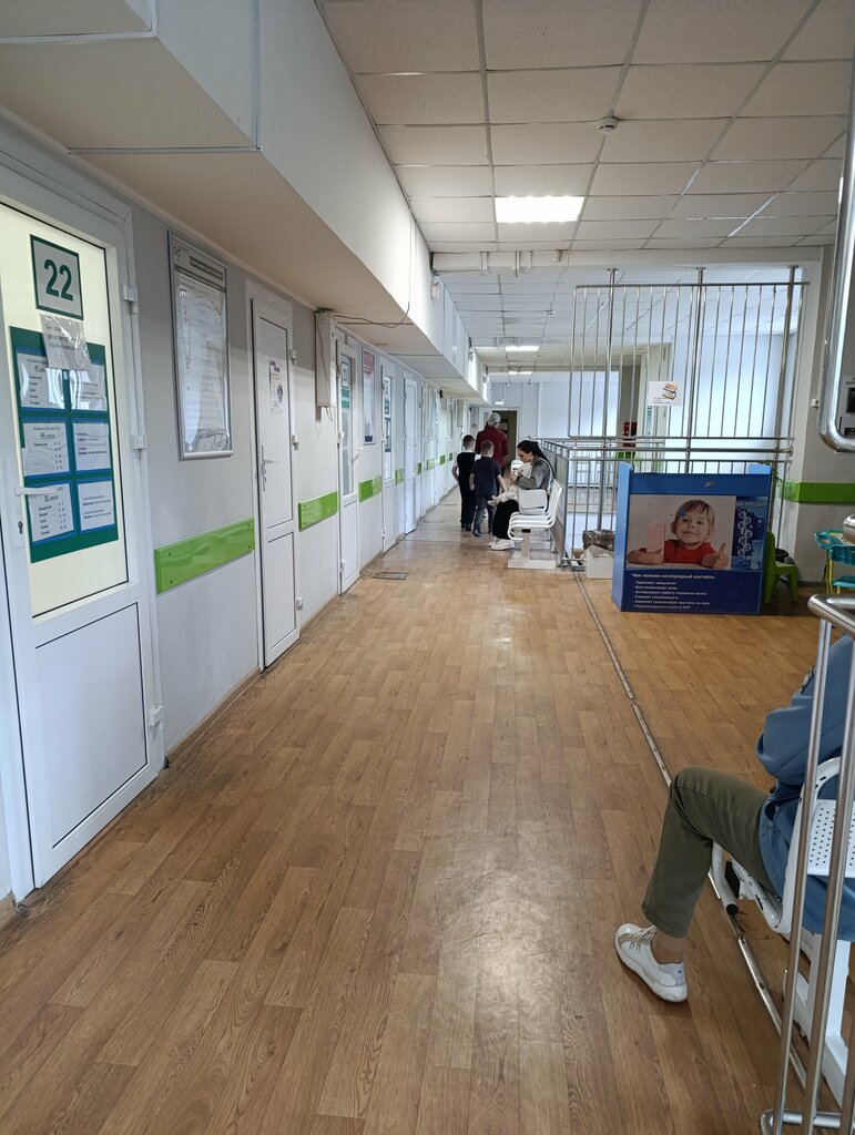 Записаться сюда по единому номеру, это, конечно, тот еще аттракцион, поэтому мы приходим по живой очереди.. Уж не знаю, кому эта система с разговором с роботом удобна, но мне точно нет. В самой поликлинике доволтно уютно. Телевизоры показывают мультики, есть столы и стулья для деток, чтобы их отвлекать, продают кислородные коктейли.. Гардероб, правда не работал, хотя все были в куртках уже.. Хочу сказать спасибо нашему замечательному доктору, Анне Петровне. Прием всегда у ребенка без слез, все быстро и по делу. Нет навязывания лекарств из соседней аптеки "по именным стикерам" (да, я встречала и такое, когда врачам потом из аптеки доплачивают за рекомендацию определенных препаратов..) Этому специалисту я доверяю, спасибо ей еще раз, за наше продуктивное лечение в короткий срок!