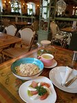 Были здесь этой осенью. Примечательно то, что ресторан расположен в старинном особняке. Интересное, оригинальное пространство, 3 этажа. Приятный, вежливый персонал в целом... Еда в основном была вкусной, салаты, котлеты. Очень понравилось фокаччо. Только вот "картофель жареный с шампиньонами" оказался просто жареной картошкой с одним обрезком шампиньона (. Так мы могли бы взять просто одну картошку, а не переплачивать за кусочек "шампиньона". Панна-котта оказалась настолько заветреной, что прилипла по краям стакана (. Крем овсяный с ягодным соусом тоже оставлял желать лучшего. Особенно пол клубники ГМО.... (. В общем 2 звезды на сегодняшний день, только за интерьер, и за фокаччо) .