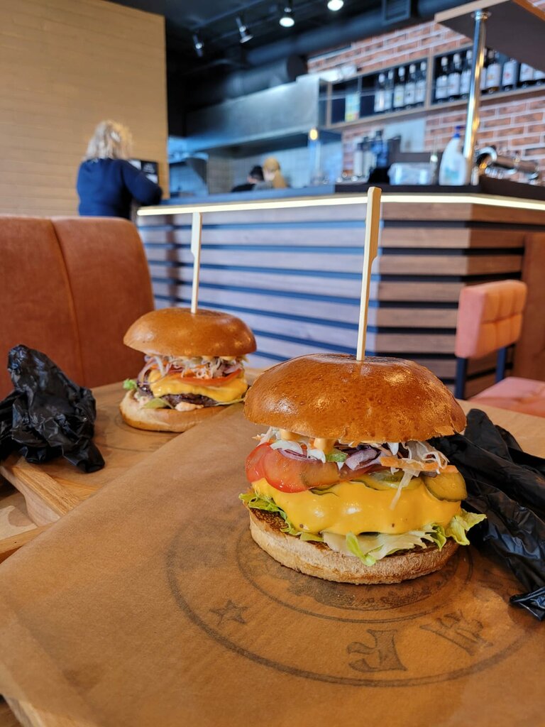 Очень уютное, чистое и светлое заведение Вежливый персонал и хозяин Вкусные бургеры и картошка с соусом, цена соответствует качеству Достаточно быстро Желаю много довольных поситителей и не терять качество, что очень важно для Кронштадта !!! Обязательно вернемся)