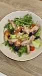 Погрузитесь в мир вкусов с нашим изысканным салатом, где сочные тигровые креветки гармонично сочетаются с хрустящими сухарями и нежной зеленью романо, а соус Цезарь и сыр пармезан придают блюду неповторимый аромат и вкус