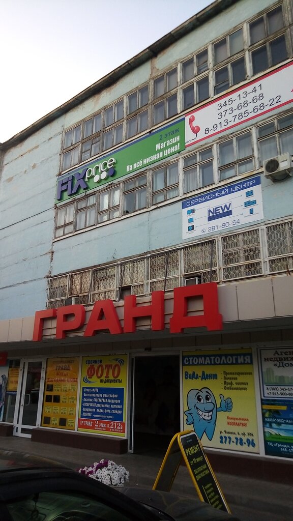 Так называемый торговый центр Гранд расположен в бывшем административном корпусе завода конденсаторов. Ремонт в здании давно не делался. Нет системы кондиционирования и вентиляции. Запахи перемешиваются. Целая "солянка" магазинов. Есть столовая, много одежды и нижнего белья, ювелир, fix price, super mag , различные моющие средства, распечатка фото, ателье, электрика, продуктовый и пекарня. Про каждый можно отдельно составлять отзыв. В зимний период не работают автоматические двери, так же подняться с колясками за покупками нет возможности как и оставить коляску/самокат/велик и т.п под пресмотром в отведенном месте.