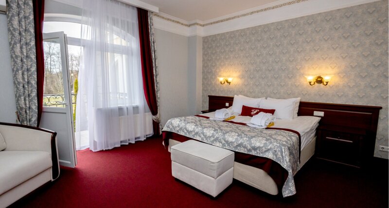 Отдыхали 9-10 сентября 2025г. с мужем, на годовщину свадьбы. Номер стандарт улучшенный, просторный, с видом на поляны гольф-клуба, на 2 этаже. Мы не любители ковров на полу, но возможно кому-то, наоборот, такое нравится. В номере было уютно, кровать (две вместе сдвинутые) удобная, высокий матрас, тихо, выспались хорошо. Получили приятный неожиданный презент от отеля на наш праздник (бутылку шампанского). В отеле хороший СПА-комплекс: понравился бассейн, с открытой уличной частью (запах деревьев, травы, свежести, при плавании, комфортная глубина бассейна), хаммам, разные сауны, соляная пещера в СПА-салоне. Ресторан работает круглосуточно, хорошо посидели вечером (меню достаточно разнообразное, сама обстановка больше по стилю паб напоминает, музыка отличная фоном вечером звучала, все блюда понравились, не пересолены, вкусные, порции большие). Завтрак «шведский стол» на 2 этаже, в просторном зале (включен в стоимость) разнообразный, на любой вкус, очень понравился. Персонал отеля внимательный, отдельное спасибо девушке Татьяне за помощь в разных вопросах и внимательный подход, очень располагает. Спасибо отелю Гранд Петергоф за такой замечательный отдых! Приедем еще! Ксения и Константин.