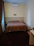Хорошая гостиница, расположена в 2-х корпусах. В номере имеется всё необходимое: тапки, халаты, фен, одноразовые щетка, зубная паста, гель для душа и шампунь. Удобная кровать. Соседей не слышали, никто не мешал. Всё было на приличном уровне. Недалеко от центра. Тихое и спокойное место. Рядом "Магнит". В номере чисто. Есть чайник и пакетики с чаем, а также вода в бутылках.На завтраке обслуживает официант. Еда вкусная. Очень красивое помещение ресторана: просторное и величественное. Нам понравилось всё и всё устроило!