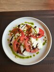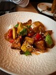 Мы посетили новый ресторан в нашем городе. Он произвёл на нас приятное впечатление: свежий и уютный ремонт, приветливый персонал, открытая кухня. Что нас особенно удивило, так это то, что сначала нам принесли десерты, а затем по одному блюду на несколько человек. Что касается кухни, то в целом мы остались довольны. Салат с хрустящими баклажанами был неплох, хотя и не самый вкусный. Шашлык был нежным, но на мой вкус слишком солёным. Манты тоже были хороши. Однако есть моменты, которые расстроили. Например, не хватало некоторых блюд и напитков в меню. Официант был очень мил. Мы хотели заказать бефстроганов, но она забыла его пробить. Но это не беда, все мы люди. Нам очень понравилось, что она принесла извинения в виде арбуза и дыни. Что касается десертов, то мнения разделились. Красный бархат был вкусным, а вот медовик показался суховатым. Мы заказали ягодный чай, и он нам понравился. В целом, мы остались довольны посещением этого ресторана!
