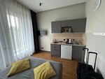 Жили в стандартных апартаментах неделю в июне 2025г. Расположены в отдельном корпусе от ресепшена, парковки и кафе с завтраком. Зато окна выходят на тихий двор, ни машин, ни пьяных у ресторана.. Апартаменты большие, двухкомнатные, высокие потолки, новая мебель, полностью укомплектованная кухня. Окна в пол, балкона у нас не было. В спальне окон нет. 3 телевизора со смарт-тв. 1 большая ванная с туалетом и доп туалет с рукомойником. Очень удобно для большой семьи. Уборка раз в 3 дня со сменой постельного белья и полотенец. По запросу приносили сразу, если чего не хватало, мыло или кастрюльки. Но мусор если быстро копится, особенно после готовки, хотелось убирать сразу. Магазин с продуктами первой необходимости сразу у отеля слева. Есть Перекрёсток и Лента подальше, ближе к метро Дикси. Рядом много ресторанов и кафе. Улица односторонняя, соответвенно все такси останавливаются на противоположной стороне. Заезд на подземную парковку по карте, выданной на ресепшн. Стоит 1300р в сутки, за карту просят залог оставить. Лифт с парковки сломан, пришлось тащить чемоданы по огромным ступеням пешком. Логистика непростая, так как апарт-отель на территории бизнес-центра. А значит ресепшн на 2м этаже, завтрак на 3м, а жить вообще в другом корпусе и везде надо иметь с собой магнитный ключ, так как многие двери на запоре. Сложно с лифтами, их мало и часто ломаются, вечно стоит народ и ждёт. К самим апартам претензий нет. Современные и удобные для жизни, все есть, начиная от зонта, заканчивая гладилкой и сушилкой для белья. Халаты, тапки, сейф, много полотенец. Капсулы для кофе и для посудомойки. Стиралка. Большие вместительные шкафы с достаточным количеством вешалок. Вайфай нормальный. Завтрак вполне достойный, стараются чтобы был разнообразным и свежим. Апарты рекомендую. Персоналу спасибо.