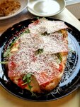 Переоцененное место. Еда на четверочку. Салат страчателла со свеклой понравился, все вкусы «поженились». Пицца Маргарита тоже была хороша, понравилось, что в качестве соуса был не банальный кетчуп или томатная паста, а протертые томаты . А вот пицца Груша-Горгонзолла разочаровала, не было той самой пикантности, как будто сэкономили на сыре. Да и паста с кальмарами и креветками ни о чем, во-первых их было ничтожно мало в пицце, во-вторых, они плохо сочетались с томатном соусом, тут бы лучше подошел сливочный.