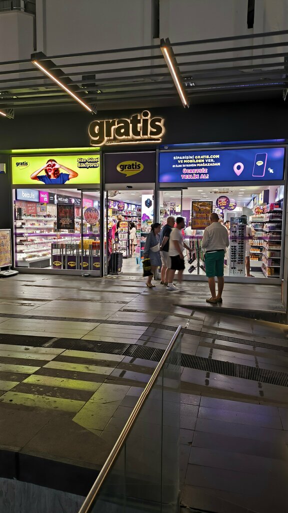 A chain cosmetics store with a format corresponding to our Druzhka chain. He is alone in Kemer, located on a shopping pedestrian street with fountains. You will recognize it by the bright purple sign with yellow letters Gratis. The prices are fixed, very reasonable, and I didn't notice any extra charges for the tourist area. I buy ziaja and been beauty creams (collagen and olive) here. Very cool and not expensive at all. Only cards and lira are accepted for payment, so you won't be able to pay with a currency like in Migros or Waikiki.