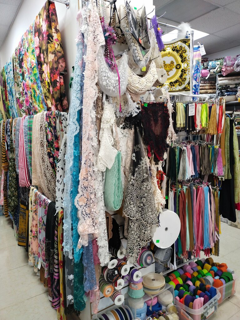 Магазин понравился. Два больших зала. Много тканей на любой вкус, цены приемлемые. Можно сразу подобрать нитки в тон , замки, пуговицы, фурнитуру.