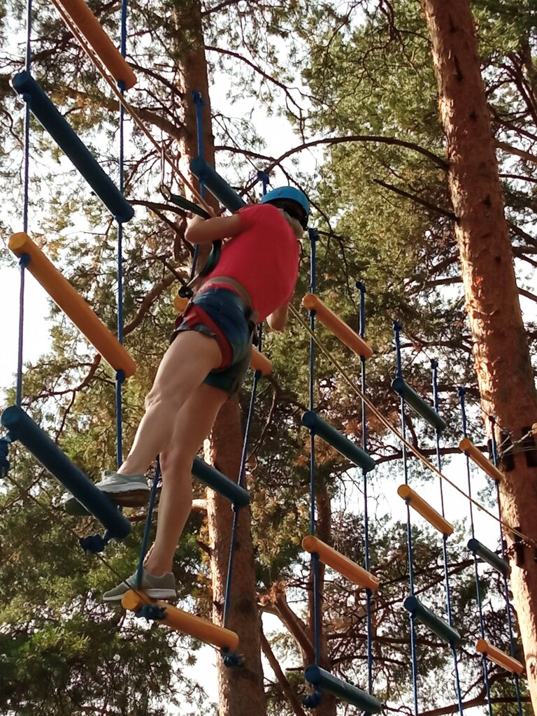 Классное место! Детям интересно полазить по трем уровням! Разной сложности. Кто то боится. Кому то в радость! Парк удачно расположен в лесу. Естественная природа. Птицы поют. Вздух! В солнечный день -тень от сосен! Есть возможность взять в аренду беседку и провести день рождения либо какой то другой праздник для близких людей! Детям раздолье. Есть система скидок для именинников! Попить чай на свежем воздухе!!! Летом там лагерь для деток. С ними занимается инструктор и учит разным туристическим премудростям! Работают приветливые и не равнодушные люди! Рекомендую к посещению! Побольше бы таких развивашек и развлекашек для детей! Кстати взрослые тоже могут походить по уровням со своими детьми! Это обьединяет!