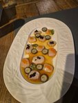 Гребешки свежайшие, тар-тар нежный. Щёчки трески очень мягкие, сочные. Нашлась маленькая косточка - убрали из счёта. Сопровождение гостей на высшем уровне. Десерты прекрасные. "Чесночок" чудесно сочетается с Кьянти)