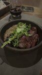 Интерьер и вежливость официантов на отлично. Вкусно. Но если для вас важен не пафос, а плотно покушать и за приемлемые деньги, то вам явно не сюда. Это заведение для бизнесменов и гостей из столиц. Небольшая порция шулюма, 200 г стейка и три пива обошлось в 3600.. Дорого для него это или приемлемо, каждый решает сам.. Повторюсь, это заведение не про покушать, а про пафос.. P.s. интересно, что чаще всего восторженные отзывы о ресторанах оставляют девушки, которые не оплачивают чек из своего кармана и для них вопрос наесться стоит явно на третьем месте после 1. Сфотографировать свою тарелку для сторис и 2. Красиво отметиться в ресторане, где её выгуливают..