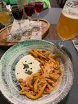 Хорошее место для посещения! Попробовали лингвини с лососем, казаречче с крабом и фирменную пиццу. Подача быстрая, блюда вкусные