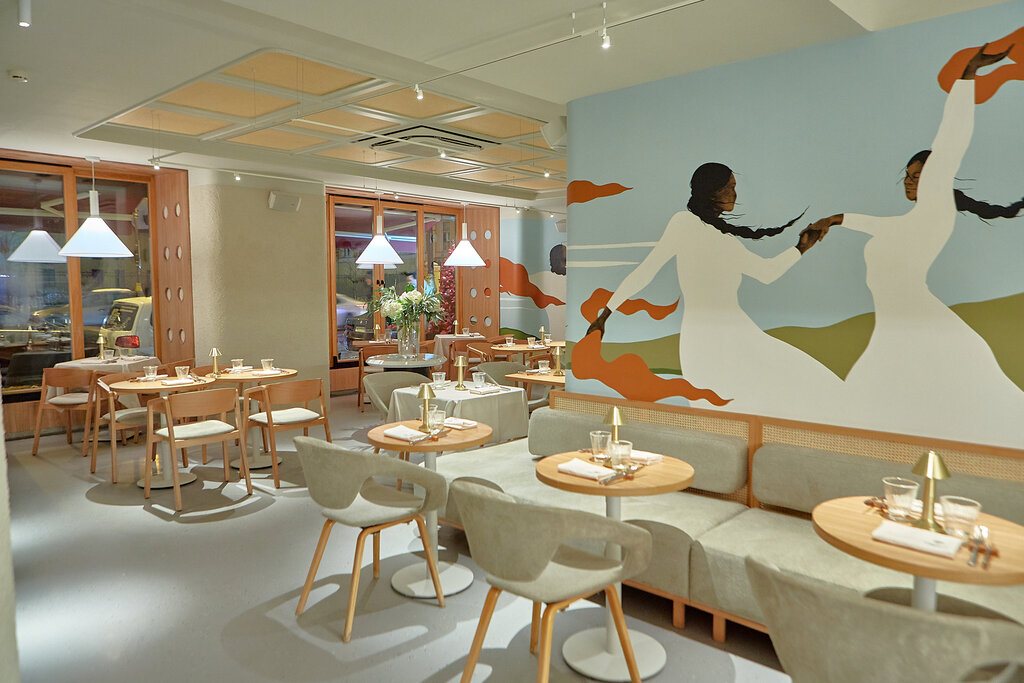 Отличное место, натолкнулись нечаянно, шли вообще в другое место. Прям волшебство. Интерьер просто огонь, тем более узнала сразу что интерьер рисовала Наталья Занчевская. Танцующие девушки ❤️ само обслуживание очень приятное, блюда вкусные, в самом кафе нет особо людей и можно спокойно посидеть и поговорить за обедом и нервничать от гвалта. Шоколадный торт очень шоколадный, греческий салат - Фета соленая что аутентично и оливки- огонь.