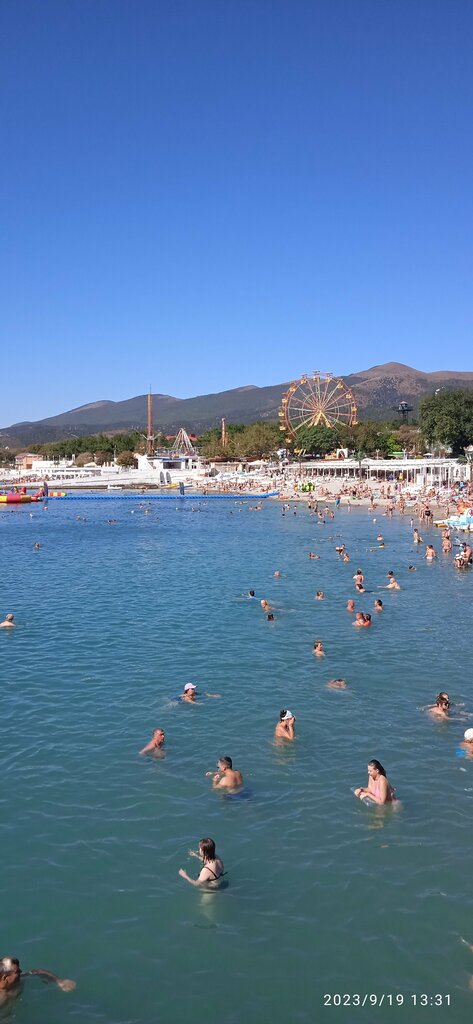 Отличный пляж, как и большинство пляжей в Витязево! Любовь с первого раза 😍 - середина сентября 2025 года. Большая просторная песчаная береговая линия, комфортный вход в море с постепенным углублением, чистая вода. Повезло даже увидеть дельфина, приплывшего прямо к купающимся, дети и взрослые получили много положительных эмоций , наблюдая за грациозными движениями дельфина. Многим повезло заснять его на видео. На выходе из пляжа неплохая столовая, что очень удобно. В общем, лично мне там понравилось 👍!!! Рекомендую!