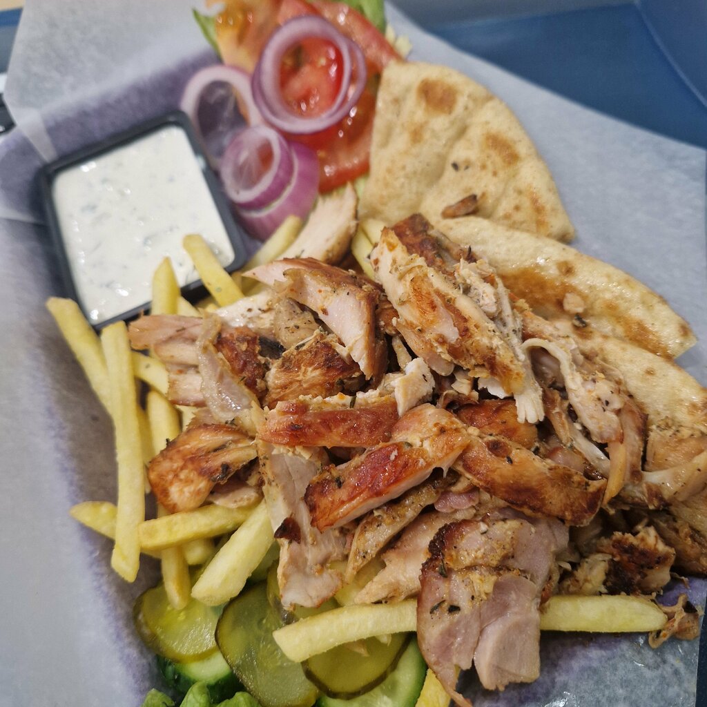 Обедал в данном месте, заказывал борщ, гирос из курицы, облепиховый морс. Вроде порция получилась большая, но не наелся. Если брать борщ, то не понравилось мясо в супе, жесткое. По гиросу, в целом вкусно, если вдаваться в подробности, не зашла картошка фри, маленькая и по вкусу не понравилась. Облепиховый морс довольно вкусный.