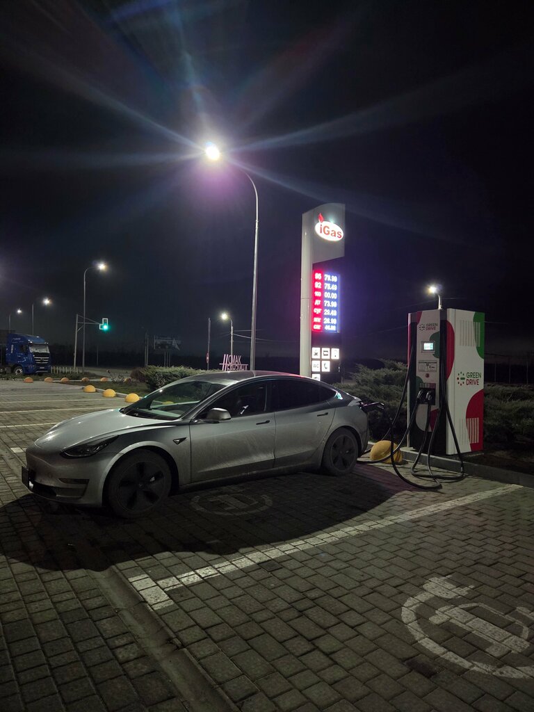 Остановились зарядиться. Не с первого раза пошёл заряд. Позвонили в службу поддержки , перезагрузили и пошёл заряд. Рядом прекрасная заправка. Не с большим ассортиментом еды, но вода по адекватным ценам. Но тоже не хватает навеса над станцией. Хочется, чтобы машина стояла не под солнцем вовремя заряда и не под дождём.