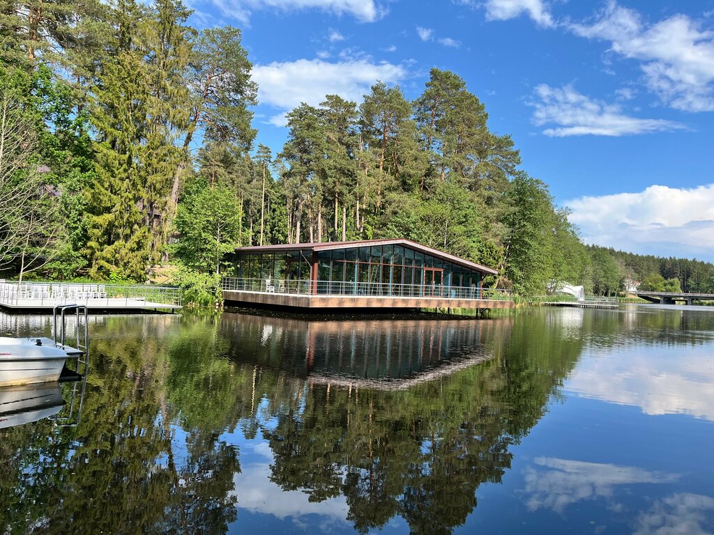 A great place to relax. A place of contrasts, where cozy nature combines and contrasts with modern technologies and interiors. Relaxing by the water can be completed with an overnight stay in a modern hotel. Every year, new locations appear that fit into the overall atmosphere. It is a popular place for weddings and banquets, but you can also walk around the territory for a casual guest, for which you can thank the owners. A good selection of dishes, pleasant prices and good service.