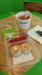 Хорошее место, особенно для любителей простых и несложных по составу блюд -- салаты с заправками, роллы в тортильях, мясо с овощами, холодные супы. Можно перекусить на месте или взять с собой, так как все блюда упакованы по порциям. Также предлагаются напитки -- прохладные (типа домашнего лимонада) или горячие (свежеприготовленный кофе и чай). Есть мороженое, десерты без сахара и полезные снеки для перекуса.
