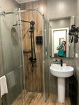 Порадовало всё,Начиная с собственной стоянки. Большой плюс в пределах ТТК. С порога отеля на полу лежит почти белое ковровое покрытие, празднично выглядит и приятно идти(поэтому, видимо, просили надевать бахилы. Меня не просили, я б сама надела). Очень милые девочки на рецепшн. Номер с новой мебелью и сантехникой. Никаких проблем с ней не было, в том числе и в душевой кабине. Унитаз тоже имеет надлежащее место и его хватает для полноценного пользования. Не знаю, кому там в отзывах было мало места... Вода в душевой отлично переключалась и на горячую и на холодную так, что даже контрастный душ получилось сделать! Это очень редко в отелях бывает. У основного зеркала приятная подсветка, если не надо общий свет. Есть набор для бритья, чистки зубов, мыло и крем для тела. Фен, увеличивающее зеркало. Номер уютный, чистый, со вкусом оформлен. Свежее белье и полотенца. Халата нет. Мне и не нужен, Я свой всегда беру. В номере прохладно. Но я положила на подоконник шторы и тюль и сразу стало теплее. И открыла дверь в санузел. Миникухня-чаи Гринфилд, кофе, сахар, микропеченюшки. Набор посуды для всех целей. Микроволновка, плита, чайник. Кран с фильтрованной водой. Полотенце и салфетки. Настольная лампа добавила уюта. Удобная кровать. Огромное одеяло. На полу то же ковровое покрытие. Вообще не понятны предыдущие отзывы, в которых перечисляются проблемы, которых просто не было!