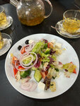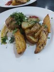 Были в городе проездом, остановились пообедать и не пожалели. В бизнес-ланче был салат с крабовыми палочками, поэтому заказывали по обычному меню. Цезарь с креветками, цезарь с курицей, греческий салат; стейк с карамелизованным луком (мясо вкусное, мягкое, но лук лично для меня лишний, не думала, что он как варенье). Детям брали шашлычки куриные - порции большие, одной точно хватило бы на двоих таких наших едоков. На гарнир ещё были овощи гриль (перец, баклажан, шампиньон, цукини). Меню довольно разнообразное (забыла сфотографировать), цены адекватные. И супы есть, и салаты, паста, закуски. Как я поняла, выбор заведений с качественной едой в Канаше не сильно велик, поэтому ориентировались на отзывы. Сытые и довольные поехали дальше)