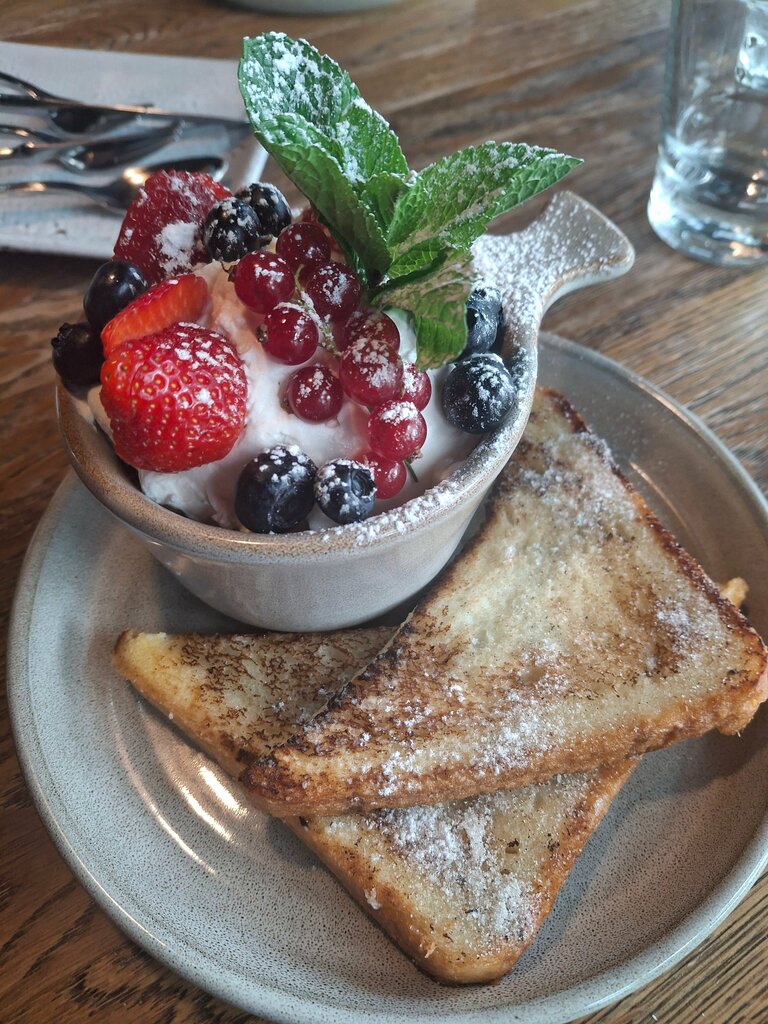 A pleasant cafe, very, very tasty! The portions are huge and filling. We tasted the signature croutons, with caviar and shrimps, awesome meat ones are also very tasty. Russian Russian is spoken by the waiters, and the menu is also translated in Russian, which was important to us.