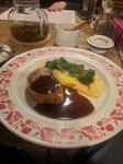 Достаточно сытно поели, но еда обыденная. Удивила в меню говядина Веллингтон - необычное и сложное для ресторана блюдо. Спросил перед заказом, готовят ли под гостя или уже заранее приготовлена. Сказали, что уже готова, только отсервируют. В итоге пришлось ждать блюдо больше часа и само оно было очень далеко от вкусно приготовленной Веллингтон: дюкселя практически не было, само мясо передержано - велданище, а корочка хлеба наоборот - не хрустящая, не выразительная, демигляс пересолен. Но обслуживание на высоте - вежливое и предупредительное. Ребятам стоит убрать такие сложные блюда из меню, сократить и упростить его и будет всё отлично!