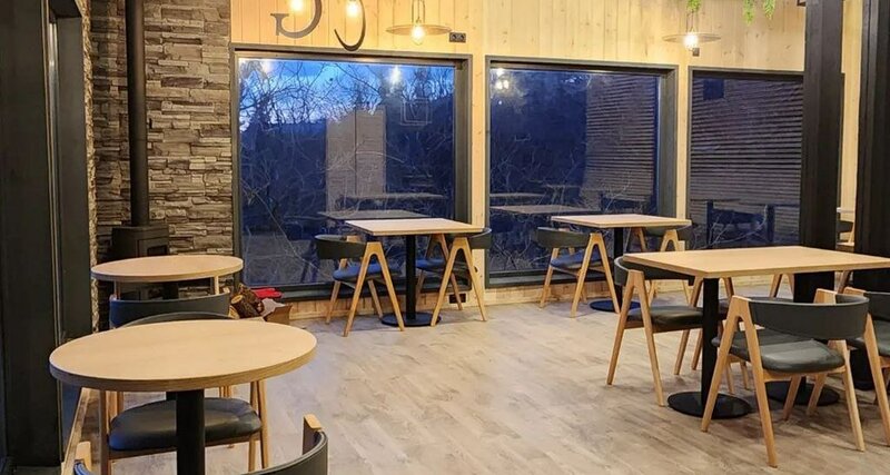 На территории работает Grey кафе, необычный дизайн с видом на море и лес, настоящий дровяной камин, оригинальными блюдами от нашего шеф повара.