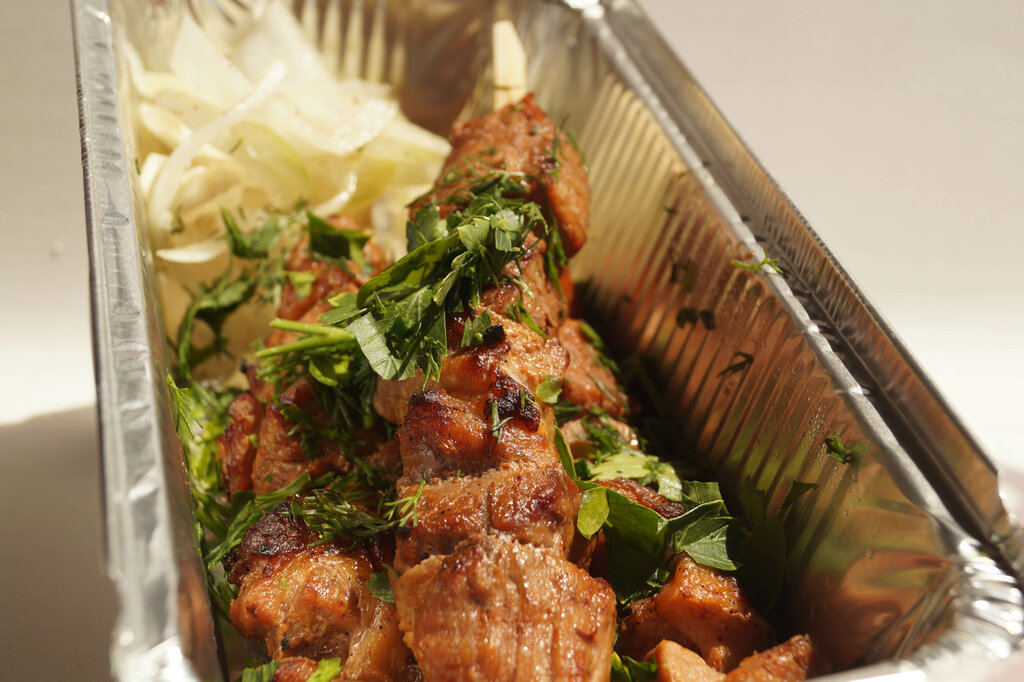 Заказываю не первый раз , шашлык сочный, люля, картофель все очень вкусно. Цены демократичные, доставка вовремя.